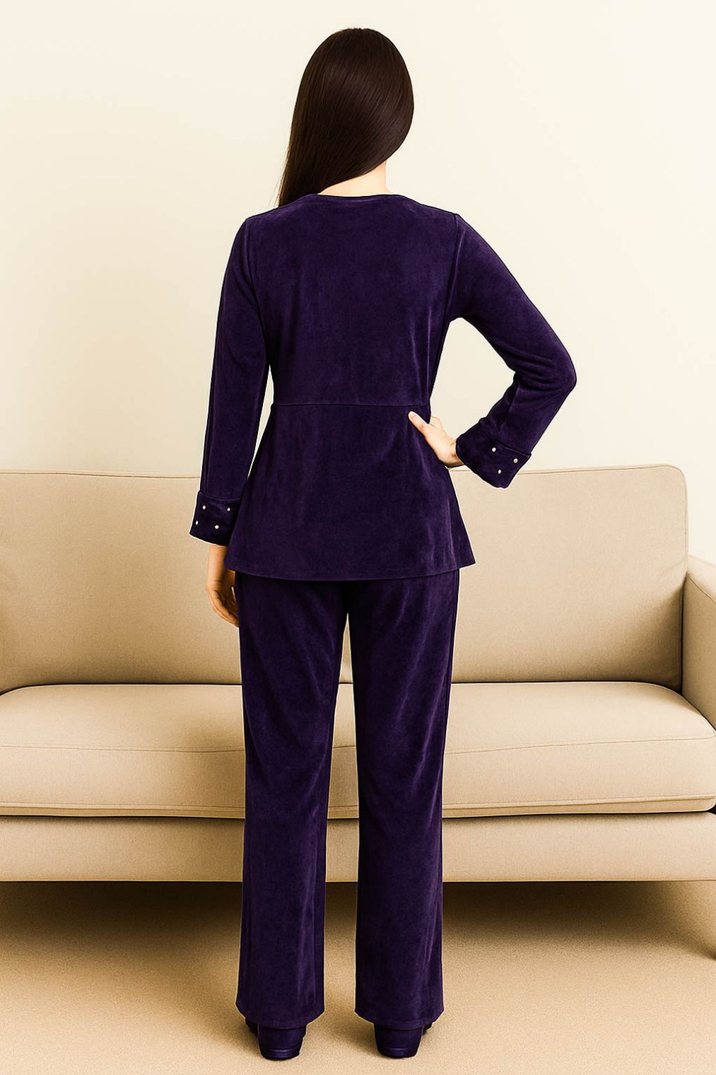 - Bottom Style: Matching velvet trousers – tailored yet comfy for an elevated lounge look