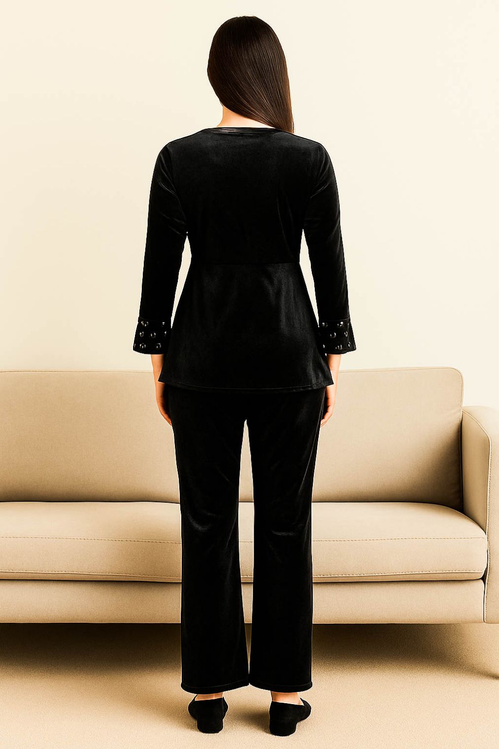 - Bottom Style: Matching velvet trousers – tailored yet comfy for an elevated lounge look